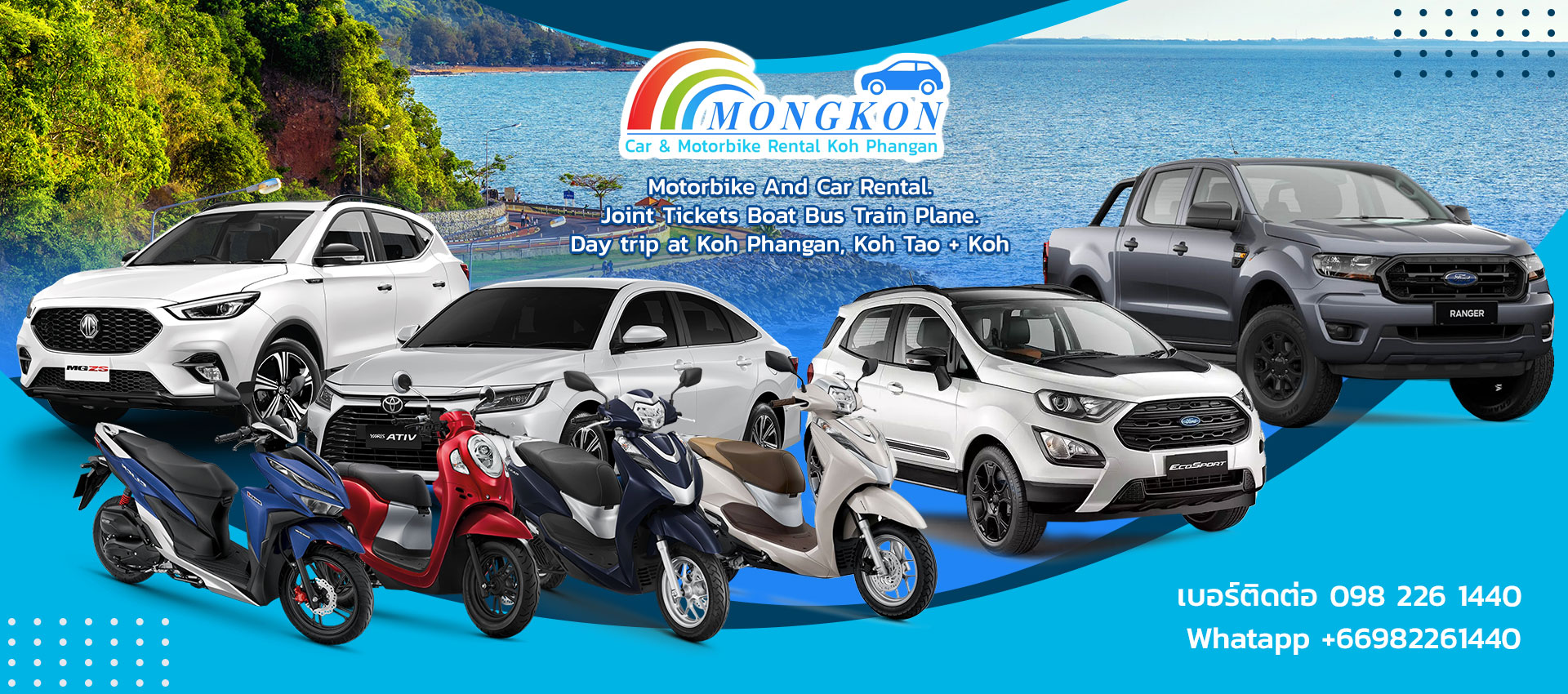 Motorbike And Car Rental. Joint Tickets Boat Bus Train Plane. Day trip at Koh Phangan, Koh Tao